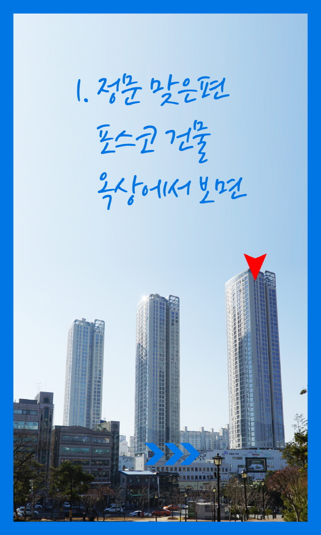 서울캠퍼스 앞 2곳 옥상에서 내려다본 풍경 나눠서 보기