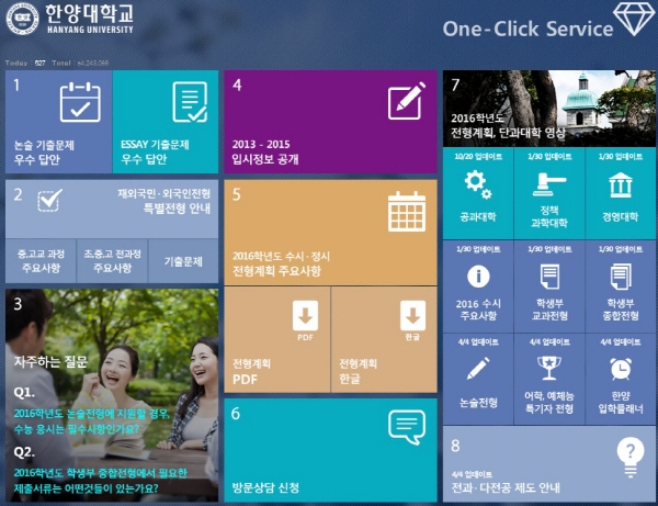 ‘수시∙정시 입학정보’를 홈페이지를 통해 공개한다.(‘One-Click Service’(http://go.hanyang.ac.kr))
