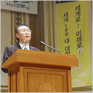 이어진 기념사에서, 김종량 총장은 “모든 한양인의 노고에 감사드린다”라는 말로 운을 떼며 “인류 역사의 발전 속도가 점점 빨라지고 있다. 한양인의 역사 또한 마찬가지다”라는 말로 최근 급성장하고 있는 본교의 발전을 설명했다. 이어 그는 “이러한 변화에 부응하기 위해 다양한 분야를 ‘융합(convergence)’해 더 큰 창조를 해야 한다”고 말하며 “궁극적으로는 한양인의 마음을 하나로 모아 3C를 이룩하자”고 말했다. 이어 김진열 명예총장도 “65년의 역사를 가진 본교가 진갑을 바라보는 나이에, 나이에 걸맞은 주체감과 책임감으로 전진해야겠다”는 말로 축사를 가늠했다.