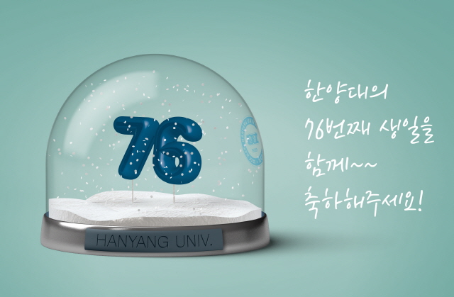 1939년 시작된 한양의 질주가 어느덧 76년의 역사를 기록했습니다. 끝이 아니고 더 멀리 더 높이 가기 위한 과정으로서 또 한 걸음의 자국을 남기는 뜻깊은 날. 사람으로 치면 '생일' 일텐데요. 5월 15일 개교기념일을 맞이해 아침 5시 15분에 올린 사진 한장을 소개합니다! 투명한 구슬속에 보이는 76이라는 숫자와 하얀 가루가 흩날리는 분위기가 환상적인 느낌이죠? 비록 컴퓨터 그래픽으로 만들어진 가상의 모습이지만 개교기념 선물로 이런 건 어떨까요? 상상 제안해 봅니다.