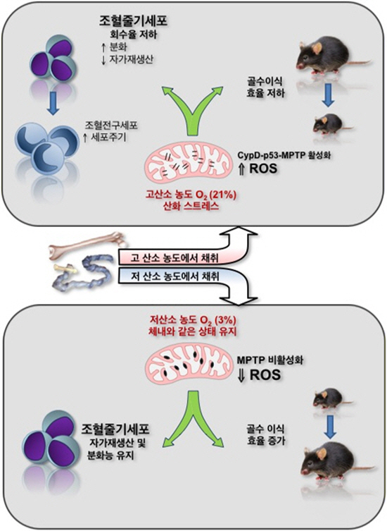 이 연구는 한국연구재단 및 한국보건산업진흥원 지원사업으로 수행됐고, 연구결과는 세계적 권위의 학술지인 셀(Cell)지 11일자 온라인에 게재됐다. (논문명 :Enhancing Hematopoietic Stem Cell Transplantation Efficacy by Mitigating Oxygen Shock)