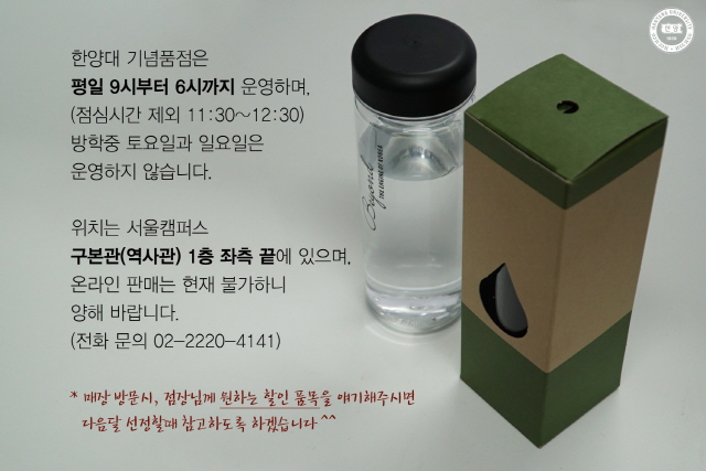 무더운 여름입니다. 요즘은 센스있게 물을 담아가지고 다니는 분들이 많은 것 같습니다. 거기에 더해 친환경 소재나 편의성 등을 꼼꼼하게 따져서 물병을 구입하죠. 7월의 할인 기념품으로 '물병'이 선정된 이유가 거기에 있습니다. 한달간 학생들에게 저렴한 가격에 판매될 물병을 소개합니다.