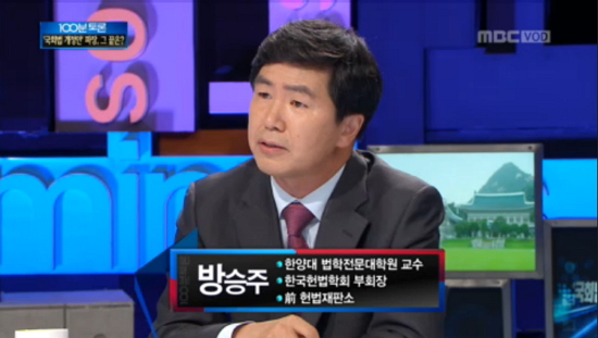 6월 30일 <MBC> '100분 토론'에는 방승주 법학전문대학원 교수가 출연해 '국회법 개정안'에 대한 의견을 나누었습니다.
