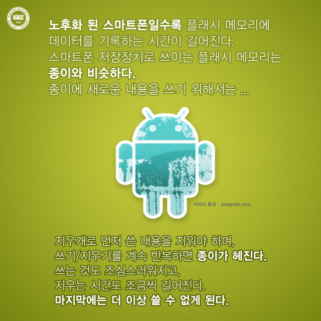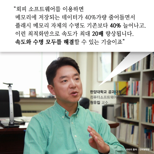 놀라운 연구성과가 발표되었습니다. 우리가 일상에서 많이 쓰는 스마트폰과 관련된 것인데요. 오래 쓸 수록 느려지는 스마트폰. 그 이유가 있었습니다. 바로 플래시 메모리 때문입니다. 이를 소프트웨어로 제어하여 최적화 시키면 수명도 40%정도 늘어나고, 속도도 20배까지 향상시킬 수 있다고 합니다. 한양대 공과대학 컴퓨터소프트웨어학과 원유집 교수팀의 이번 성과는 9일(현지시각) 미국에서 열리는 SW분야 최고 학술대회인 유제닉스(USENIX) 연례 기술회의에서 발표된다고 합니다. 카드뉴스로 만나보세요~