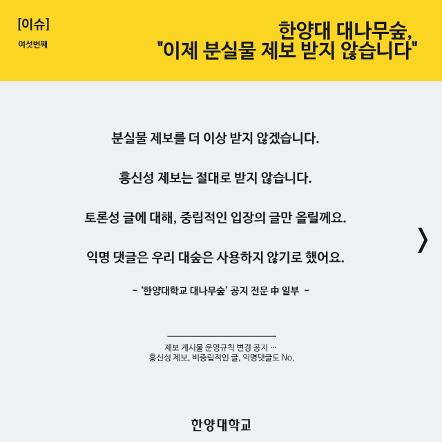 - 한양대 대나무숲, "이제 분실물 제보 받지 않습니다"
