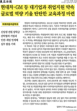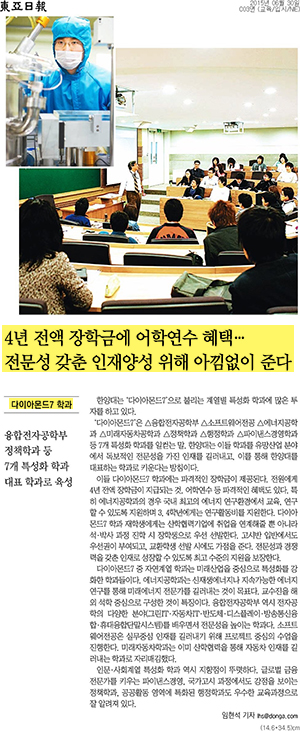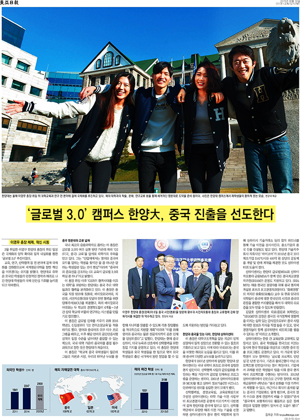 6월 30일자 <동아일보>에는 한양대의 국제화, 창업 지원, 특성화학과, 입시 정보 등에 대한 특집 기사가 4면에 걸쳐 게재되었습니다.