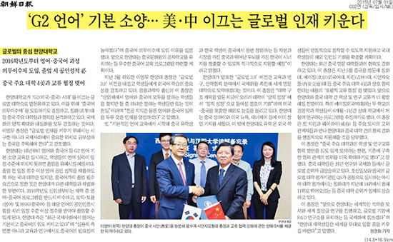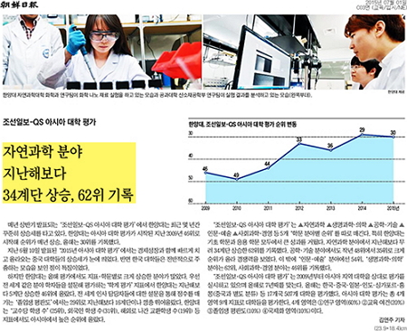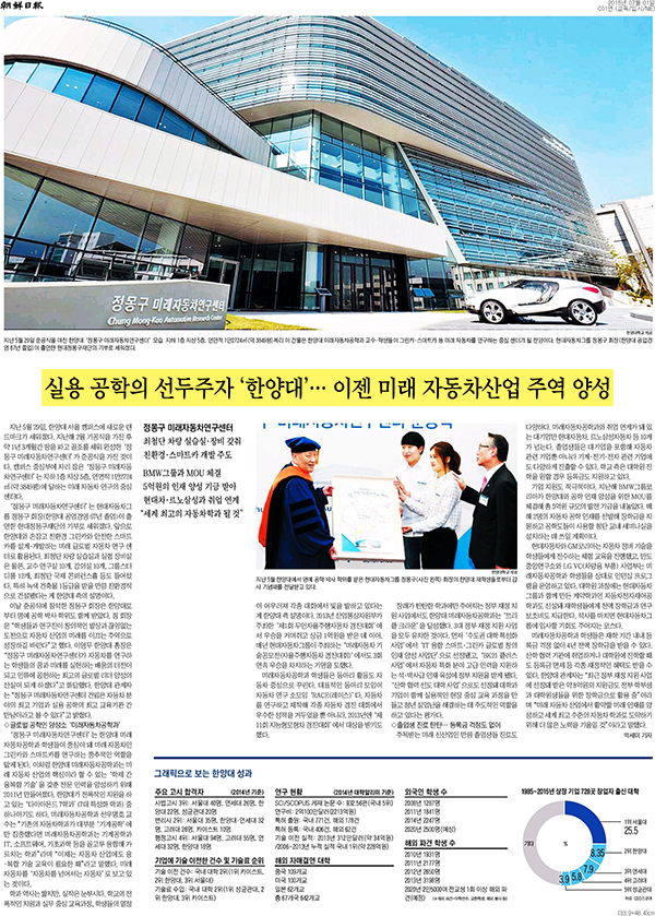 7월 1일자 <조선일보>에는 한양대의 미래자동차공학과, 국제화, 아시아대학평가 결과, 입시 등에 관한 특집 기사가 4면에 걸쳐 게재되었습니다.