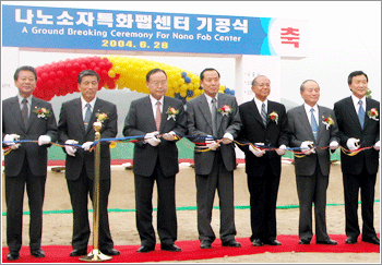 지난 28일, 경기도 수원시 중소기업 종합지원센터에서는 나노소자특화팹센터 기공식이 열렸다. 이번 행사는 오명 과학기술부장관, 손학규 경기도지사, 권숙일 나노소자 특화팹 센터 이사장, 유세희 서울캠퍼스 부총장 등 국·내외 과학 관계자 300여명이 참석한 가운데 성대하게 개최됐다. 총 1천 7백 17억원 사업비를 들여 2008년 완공 예정인 센터는 국내·외 나노 연구 네트워크 구축과 함께 동북아 허브 팹(Fab)을 구현할 것을 목표로 하고 있다.