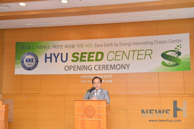 | ▲ 에너지 하베스팅 센터 개소식 축사를 하는 김회율 한양대 교학부총장 | ||