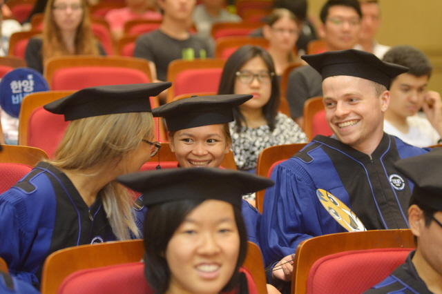 한양대는 31일 교내 백남음악관 메인홀에서 ‘2015 한양 국제여름학교’ 졸업식을 열었다. 참가학생을 대상으로 열린 이번 졸업식에는 외국에서 온 800여명의 학생과 국내 학생 400여명이 참석했다.