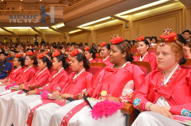 | ▲ 국제여름학교 부채춤 수업에 참여한 학생들이 공연 시작 전 기다리는 모습 | ||