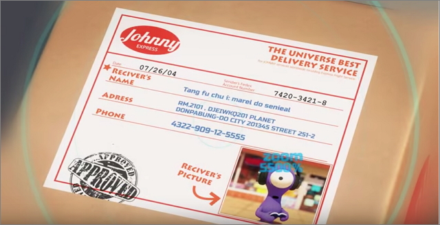 | ▲ 작은 행성에서 주문한 아주 작은 택배물을 확인한 택배기사는 외계 택배 수령자를 찾아간다.(이미지출처: ‘자니 익스프레스’ 유투브 동영상) | ||