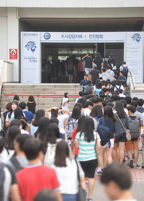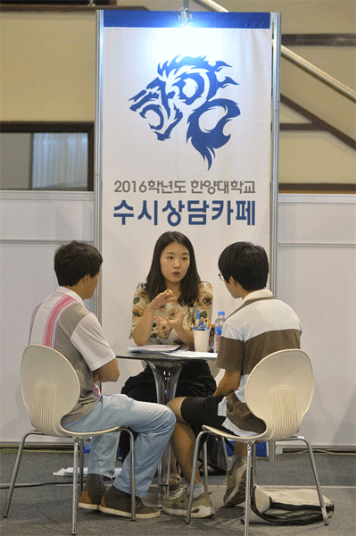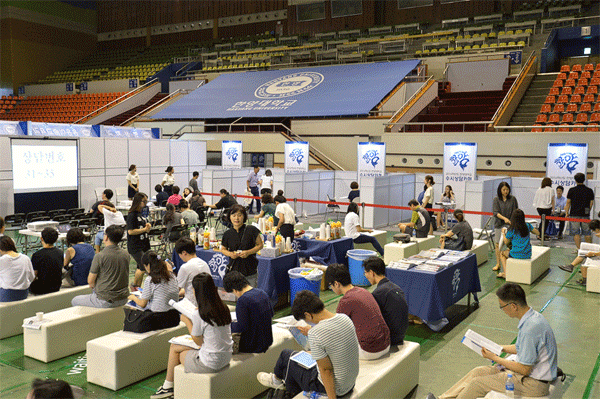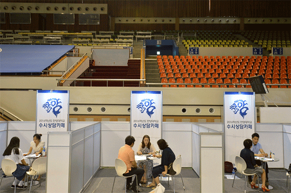 8일 올림픽체육관에서 열린 2016학년도 수시상담카페와 전공진로탐험행사의 현장을 8장의 움짤로 담아봤습니다. 많은 사람들이 모여 북적이면서도 쉴새없이 움직이는 모습이 인상적이네요.