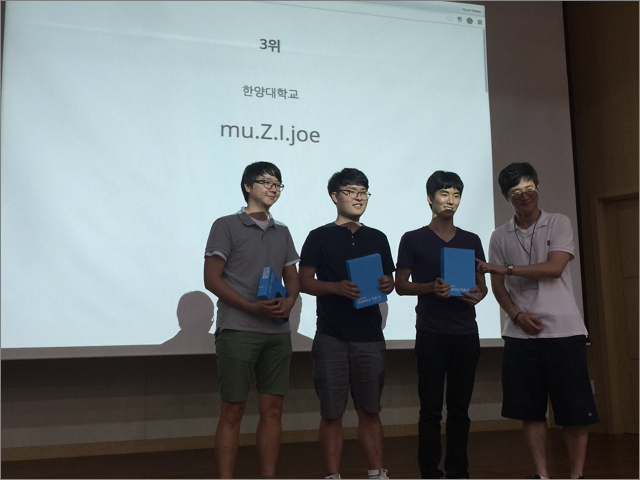 | ▲ 제5회 전국 대학생 프로그래밍 여름대회에서 3위에 입상한 ALOHA의 mu.Z.I.joe 팀원들(이미지출처: 한양대 알고리즘 연구동아리 ALOHA 페이스북 페이지) | ||