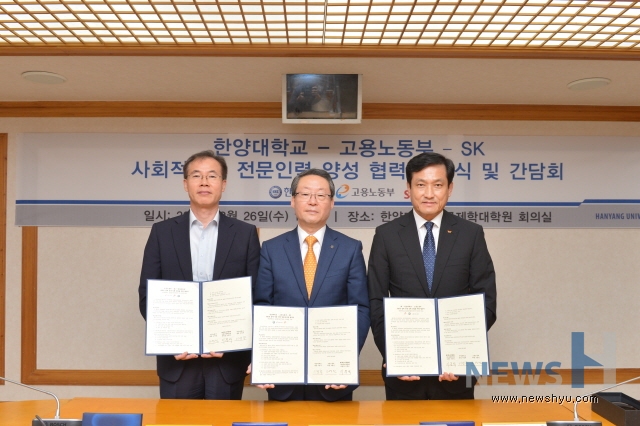 한양대가 고용노동부·SK그룹과 사회적 경제전문 인력 양성을 위한 협약(MOU)을 26일 체결했다.