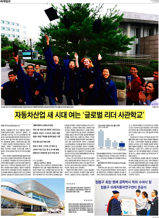 3일자 <세계일보>에는 한양대학교의 글로벌화, 고시 성과, CEO 육성, 2016학년도 입시 정보 등에 관한 특집 기사가 게재되었습니다.