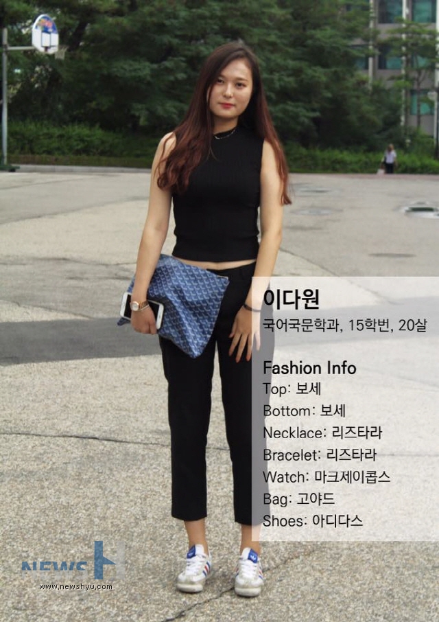 ★ 학생 모델 명단 : 이다원(국어국문학과), 민정은(미디어커뮤니케이션학과), 오규(독어독문학과), 이수(의류학과), 김번창(신소재공학부), 한정수(응용통계학과 대학원), 이선영(연극영화학과), 김광자(경영학과), 김다은(식품영양학과), 홍소희(관광학부), Jascha Vogel(산업공학과), 신윤영(건축학과), 안성현(연극영화학과), 정용주(경영학과), 바이루(미디어커뮤니케이션학과), 김승현(식품영양학과), 지기원(실용음악학과), 이진영(산업공학과), 김혜숙(간호학과)