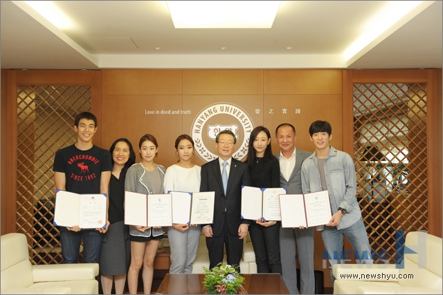 | ▲ 한양대 이영무 총장과 대회에서 수상한 무용과 학생들이 함께한 사진. | ||