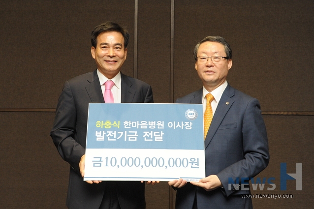 하충식(56) 창원한마음병원 이사장은 17일 한양대에 100억원의 발전기금을 기탁했다.