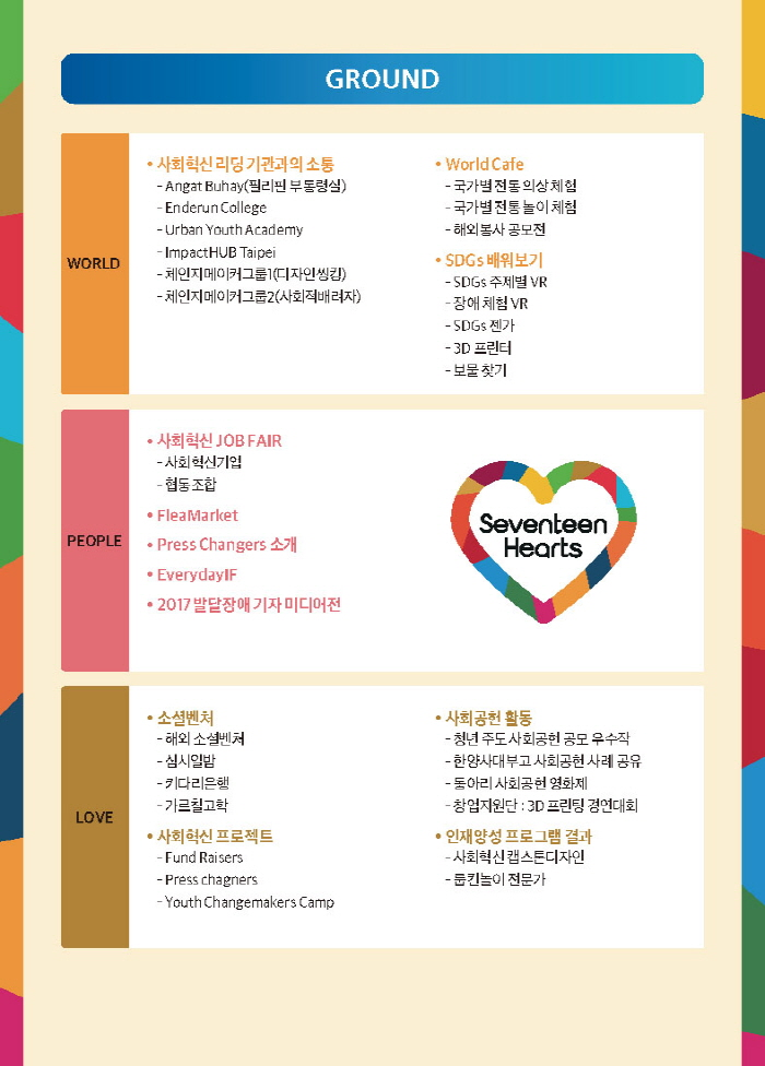 이외에도 한양대는 행사 기간 중 올림픽체육관에서 국가별 사회혁신 아이템 전시, 전통 의상, 놀이, 음식 등을 체험할 수 있는 ‘World cafe booth’, 사회적가치를 품은 상품들을 판매하는 ‘플리마켓’ 등도 진행한다.