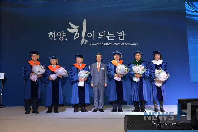 | ▲ 나눔의 실천을 통해 사회에 귀감이 된 기부자들을 국내대학 최초로 한양대 최고의 명예인 ‘나눔 교수’로 위촉했다. | ||
