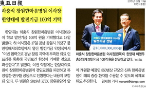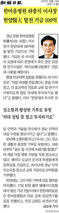 9월 19일자 <동아일보>, <조선일보>, <중앙일보>, <서울경제>, <한국대학신문>에는 하충식 창원한마음병원 이사장이 한양대에 발전기금 100억 원을 기탁했다는 소식이 전해졌습니다. 기사에 따르면 기금은 한양대가 추진 중인 의생명 연구시설인 '바이오메디컬센터' 건립에 사용될 예정이라고 하는데요. 이번 기부와 함께 한양대도 한양대의료원과 한마음병원의 의료 협력을 약속해, 앞으로 의료·교육·임상연구를 공동진행하고 전임 교원을 파견하기로 결정했습니다.