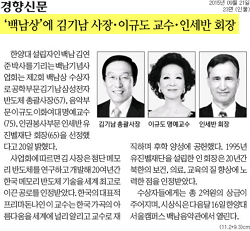 9월 22일자 <동아일보>, <중앙일보>, <서울경제>, <한국경제>, <경향신문>, <한겨레> 등 8개 매체에는 제2회 백남상 수상자가 게재됐습니다. 한양대는 공학상에 김기남 삼성전자 반도체 총괄사장, 음악상에 이규도 이화여대 명예교수, 인권봉사상에 인세반 유진벨재단 회장을 선정했는데요. 수상자에게는 총 2억원이 주어지며 시상식은 10월 16일 한양대학교 백남음악관에서 진행된다고 합니다.