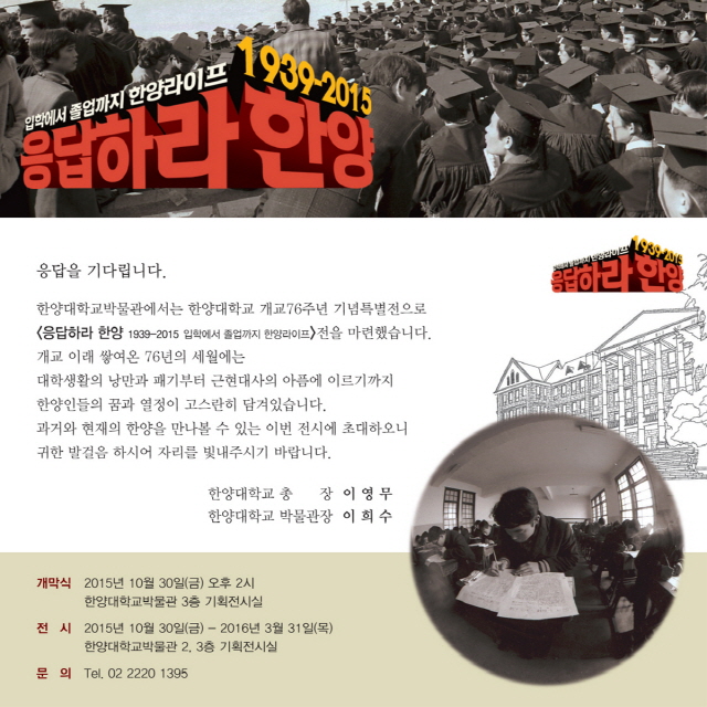 2015년 올해는 한양대학교 개교 76주년이 되는 해. 어느덧 쌓아온 역사가 한 사람의 인생 만큼이나 높음을 실감케 합니다. 그래서 한양대 박물관에서는 남다른 전시회를 준비했네요. 이름하여 '응답하라 한양 1939-2015' 입니다. 전시회 시작에 맞춰 15점의 보기 드문 사진 자료도 함께 공개를 했습니다. 어떤 것들이 있을까요? 함께 보시죠.