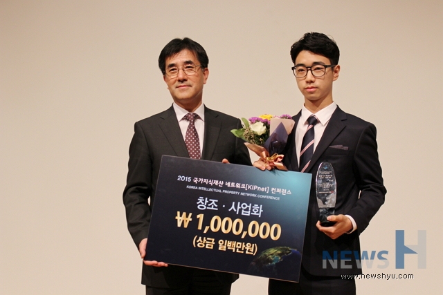 한양대(총장 이영무)는 지난 11일 서울 삼성동 코엑스에서 국가지식재산위원회(공동위원장: 황교안 국무총리, 윤종용 민간위원장)가 주최한 ‘국가지식재산네트워크 2015 콘퍼런스’에서 한양대 창업동아리 소속 김준규 학생이 청년지식재산인상(Young IP Pioneers Award)인 미래창조과학부장관상을 수상했다고 16일 밝혔다.