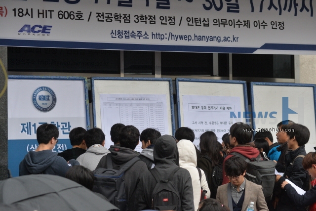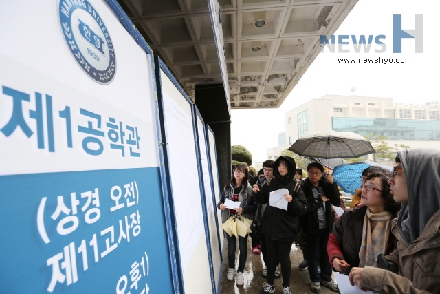 14일 오전 9시 45분부터 시작한 한양대의 논술고사 1교시 상경계열에만 5298명의 수험생이 응시했다. 14일 상경·인문계열, 15일 자연계열로 이틀동안 나눠 실시되는 한양대 논술고사에는 503명 모집에 3만6708명이 지원해 72.98대 1의 높은 경쟁률을 보였다. 이는 작년 논술고사 경쟁률 44.7대 1에서 크게 상승한 것이다.
