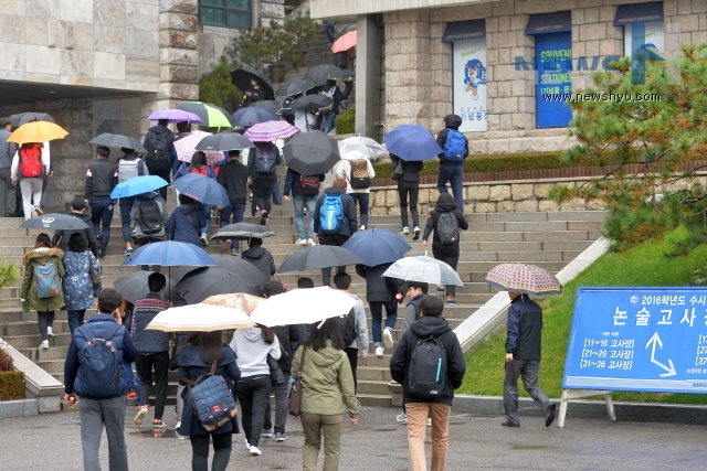 수험생과 학부모들이 14일 오전 한양대 2016학년도 수시모집 논술고사에 응시하기 위해 서울 성동구 한양대 캠퍼스 안으로 들어오고 있는 모습 등을 포토뉴스로 공개되었다.