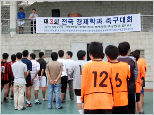 전국 경제학과 축구 연맹에서 창설한 이 대회는 첫해에 4개, 2회 때는 10개 팀이 참가했었다. 3회째 접어든 이번 대회에는 14개 팀이 참여해 명실상부한 전국규모 대회로 커나가고 있다. 이번 축구대회 준비를 총괄한 꽁치기 회장 김지태(경금대·경제2)군은 “학업과 운동을 병행하면서 모이는 게 쉽지 않았다. 앞으로 경기 일정도 주로 주말로 편성했다. 지금은 3회째로 대회가 정착돼가는 것으로 보고 있다. 스포츠를 통한 교류를 통해 경제학도들끼리의 친목을 다져가도록 만들어 나갈 것이다”고 전했다.