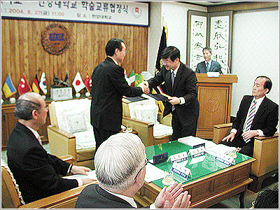 지난 달 27일 본교는 국내 대학 중 23번째로 성균관대와 학술교류협정(이하 협정)을 체결했다. 본교 이사장실에서 열린 이번 협정식은 양교의 총장과 13명의 교무위원이 참석한 가운데 진행됐다. 기획조정처장 오재응(공과대·기계)교수의 사회로 진행된 협정식에서 김종량 총장은 “성균관대는 조선시대 이미 대학교육의 면모를 갖췄던 역사적인 학교”라고 평가하며 “이렇게 협정을 맺을 수 있게 된 것은 취임이후 대학 간 교류·협력을 강조해 온 서정돈(성균관대)총장의 강한 의지 덕분이다”며 성균관대 총장과 교무위원들의 방문에 사의를 표했다.