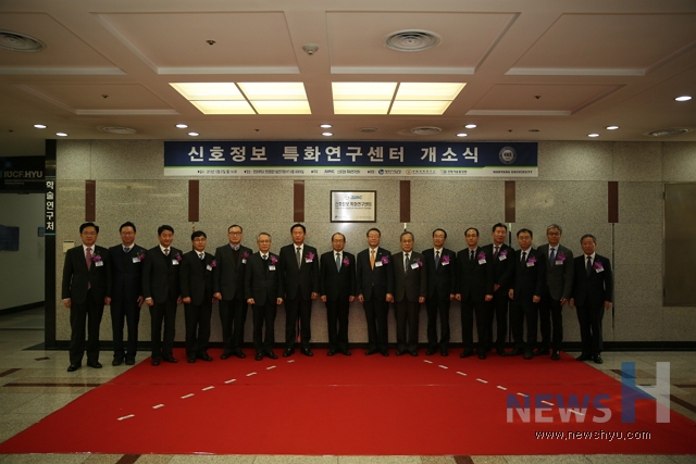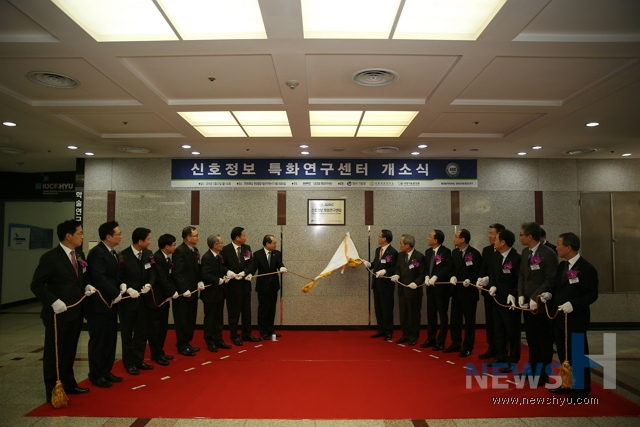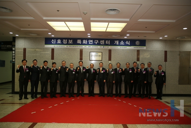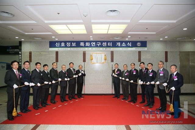 | ▲ 한양대는 7일 서울시 성동구 교내 한양종합기술원(HIT)빌딩에서 ‘신호정보 특화연구센터’ 개소식을 열었다. 한양대는 ‘2015년 신호정보 특화연구센터 지원사업’에 선정돼 2020년까지 125.1억원을 지원받는다. | ||