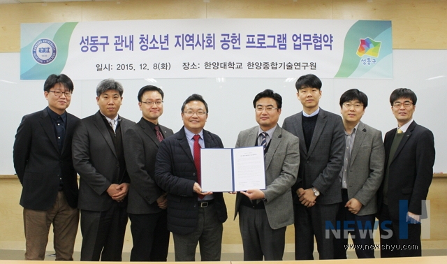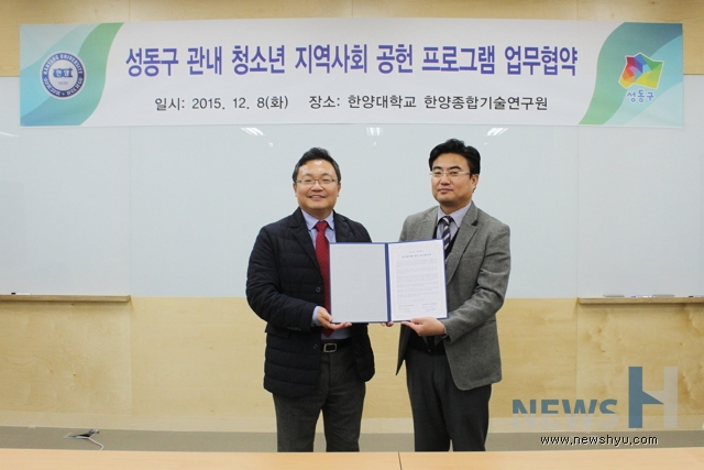 한양대학교(총장 이영무)는 8일 서울시 성동구 한양종합기술연구원에서 서울 성동구청(구청장 정원오)과 함께 성동구 관내 청소년들의 진로 설계를 위한 3D프린팅 체험교육 등 지역사회공헌 프로그램 운영에 대한 업무협약을 체결했다고 밝혔다.