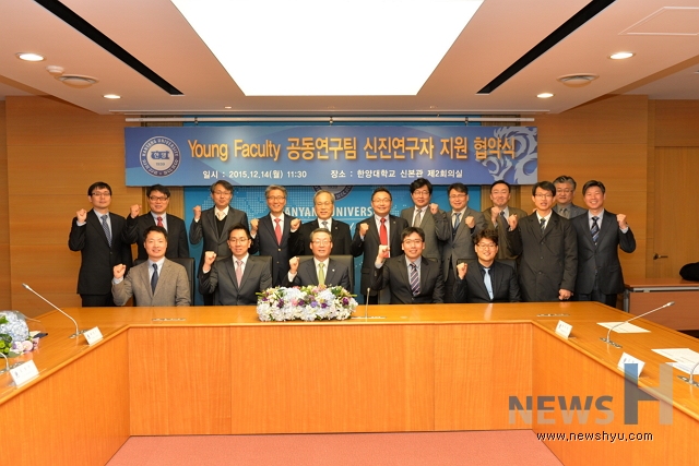 한양대(총장 이영무)는 14일 서울 성동구 신본관에서 중견 연구진들과 ‘신진 교수진 연구 지원’에 관한 협약을 체결했다.