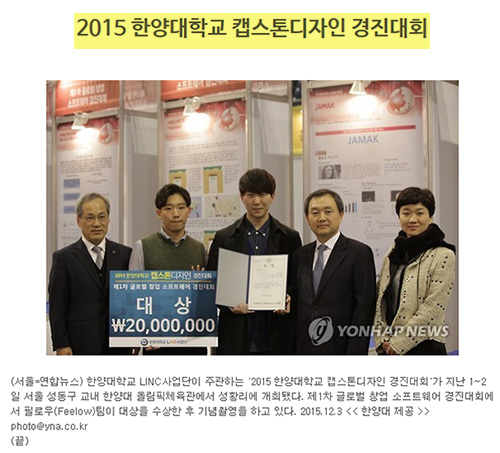 12월 3일자 온라인매체 <연합뉴스>, <뉴스1>, <서울신문>, <베리타스>에는 12월 1일 한양대에서 개최된 '2015 한양대학교 캡스톤디자인 경진대회'에 대한 소식이 전해졌습니다. '캡스톤디자인'이란 공과계열 학생들에게 산업현장에서 부딪힐 수 있는 문제를 해결할 수 있는 능력을 길러주기 위해 졸업논문 대신 작품을 설계ㆍ제작 하도록 하는 종합설계 교육프로그램입니다. '캡스톤디자인 경진대회'를 주관한 LINC사업단장은 "창의인재 양성을 위해 전 계열의 학생들이 모두 동참하는 경진대회를 만들어 가도록 노력과 지원을 아끼지 않겠다"며 "기업과 협의해 청년창업으로 이어지는 선순환 구조의 산학협력 선도 모델을 만드는데도 최선을 다하겠다"고 말했습니다.