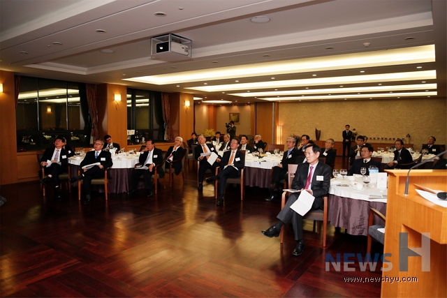 | ▲ 12월 7일 신본관 6층에서 열린 ‘한양발전후원회 제11회 정기모임 및 송년 만찬’에는 한양발전후원회 위원 20명을 비롯해 한양대 교무위원 15명 등 총 35명이 참석했다. | ||