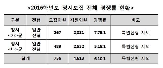 국내 대학 중 최초로 정시 ‘가’군 합격자 188명 발표