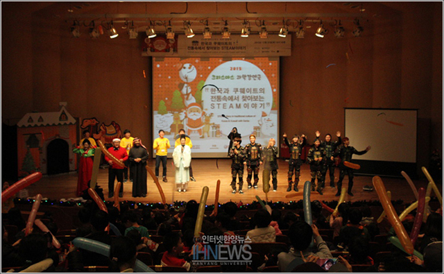| 크리스마스 분위기가 물씬 풍기는 백남음악관이 아이들로 가득 찼다. 지난 12월 22일, 한양대 청년과학기술진흥센터(TIST, Teenager Into Science and Technology)가 초, 중, 고등학생들을 대상으로 과학 강연극을 열었기 때문. 겨울치고는 포근한 날씨 속에 강연극이 진행됐다. 청년과학기술진흥센터 최정훈 센터장(교무처 창의융합교육원)과 쿠웨이트 응용교육훈련청(PAAET)에서 온 압둘아지즈 알나자르(Abdulaziz Alnajjar) 교수는 이 날을 위해 일일 산타로 분했다. 과학 지식을 재미있게 전달하는 한편, 아이들을 위한 선물까지 준비했다. 체험 활동과 공연이 어우러진 참신한 강연에 객석에 앉은 아이들의 반응은 뜨거웠다. 청년과학기술진흥센터의 탄생과 함께 14년째로 접어든 과학 강연극을 방문했다. |