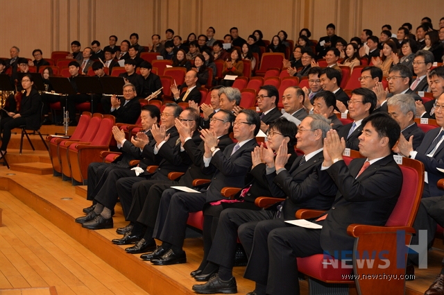 한양대(총장 이영무)가 4일 오전 11시 교내 백남음악관에서 500여명의 교직원이 참석한 가운데 2016년도 신년 인사회 및 시무식을 개최했다.