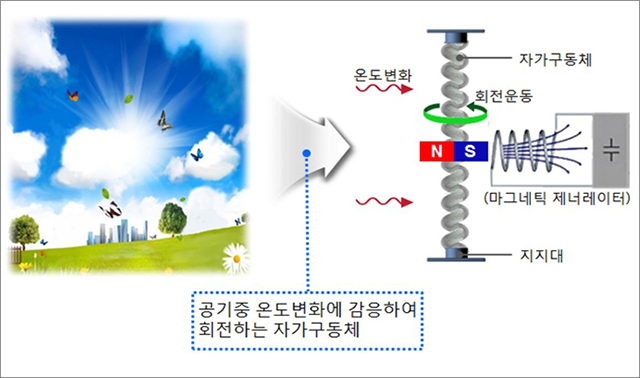 | ▲ 온도 변화의 영향으로 전기를 생산하는 인공근육 (출처 : 김선정 교수) | ||