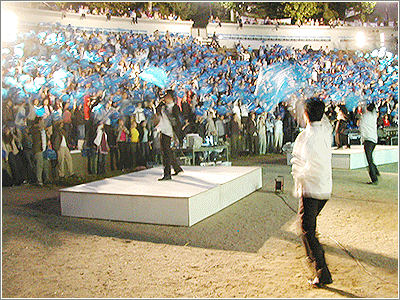 행사 마지막 날에 있었던 응원제 ‘한양이하나되어’의 열기 또한 뜨거웠다. 본교 응원단 ‘루터스’와 함께 학우들은 ‘한양, 우리는 하나’를 외치며 총학생회 측에서 나눠준 파란색 봉지를 흔들어 노천극장을 푸르게 물들였다. 이어 학생들은 서로 어깨동무를 해 인간 파도를 만드는 등 행사의 처음부터 끝까지 뜨거운 분위기를 이어나갔다. 이날 음향 효과를 맡은 이항(공과대·응용화학4) 군은 “보여주기만 하는 응원제에서 탈피하고자 했다”며 이번 응원제의 목적을 설명했다. 이 군은 이어 “올해의 응원제에서는 관중 모션에 중점을 뒀다. 학우들이 직접 개사를 한 곡 세곡과 모션 곡 한곡, 총 네 곡을 특별히 준비해 본교생의 단합을 꾀했다”고 말했다. 예비 한양인의 반응 역시 뜨거웠다. 본교 경영학과 05학번으로 입학예정인 류혜영 양은 “무척이나 흥분됐다. 이런 자리에 노천극장의 빈자리가 있다는게 이해가 안 갈 정도다. 오늘과 같이 한양대의 애교심을 직접 느낄 수 있는 자리가 많았으면 좋겠다”고 강조했다.