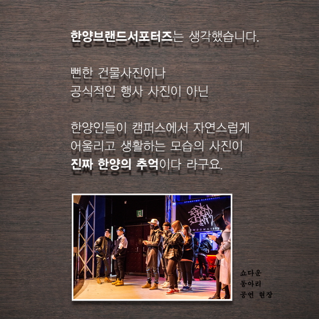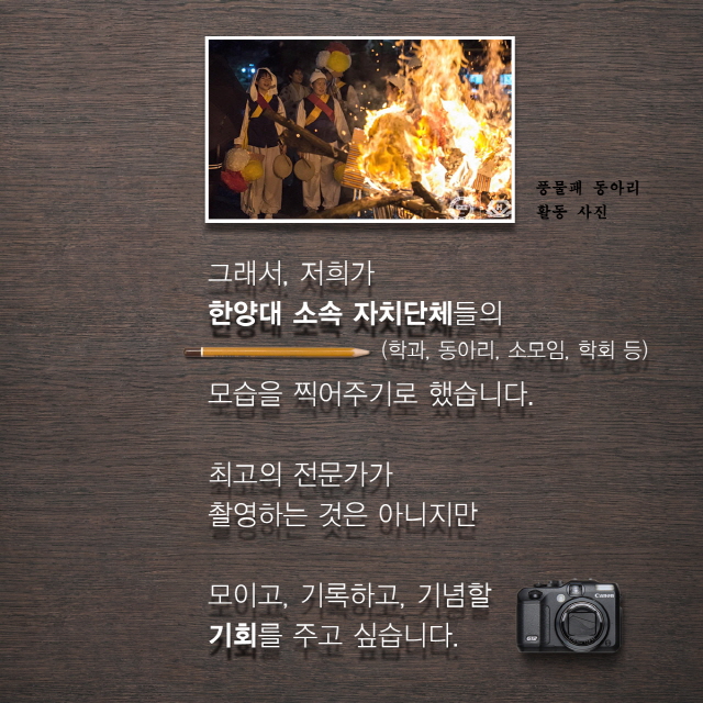 한양브랜드서포터즈가 말하는 촬영의 이유. 들어보시죠! 그리고 이번 프로젝트를 위해 만들어진 페이스북 페이지 '한양한컷(하단 링크)'에도 들려서 작품들 감상해보시길 권해드립니다~