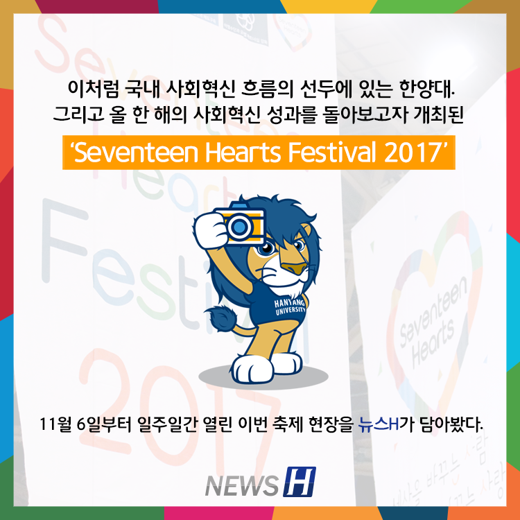 ▲ 카드뉴스의 원본 기사는 아래에서 읽을 수 있습니다- ‘Seventeen Hearts Festival 2017’: 세상을 바꾸는 사람, 사람을 바꾸는 사랑- 한양대, 사회혁신의 선봉장
