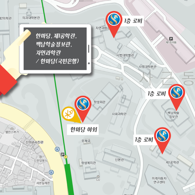 서울캠퍼스 현금인출기 위치 총정리 … 총 20곳 지도에 표시
