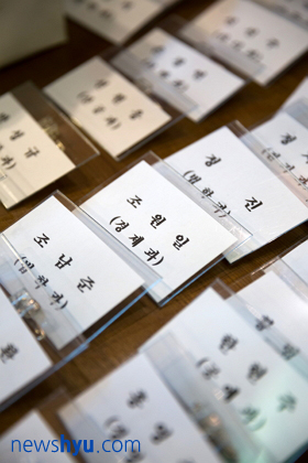 | ▲ 50대에 접어든 ‘왕년의 용사’들은 이름표를 받아들고 모처럼 그때 그 시절로 되돌아갔다. | ||