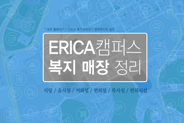 최근 ERICA캠퍼스 장학복지회 홈페이지 업데이트가 되었다고 하여 각종 복지 매장들에 대한 내용을 업종별로 정리해 보았습니다. 학생들의 캠퍼스 생활에 도움이 되길 바랍니다!