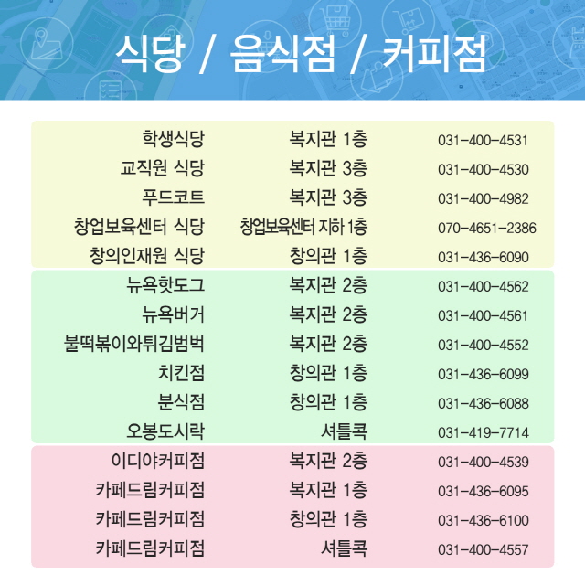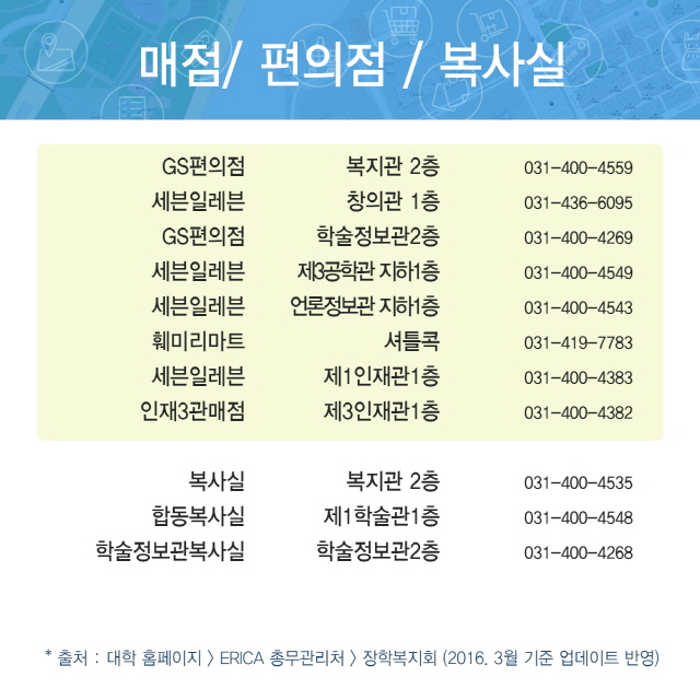 ERICA캠퍼스 장학복지회에서 관리하는 매장 리스트