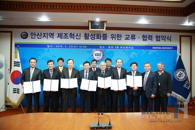 한양대 ERICA캠퍼스는 3월 23일, 본관에서 ‘안산지역 제조혁신 활성화 교류 및 협력 협약식’을 개최했다. 이번 협약은 안산 지역의 제조혁신 활성화를 위해 인근 제조혁신 유관기관과 ERICA캠퍼스 간의 상호 교류 및 협력관계를 구축하는 것을 목적으로 이뤄졌다.
